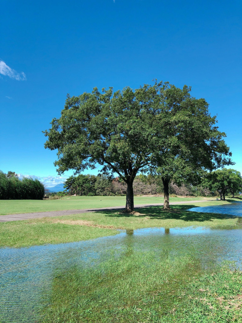 台風一過で恐ろしく天気のいい宝積寺を散策してると、川沿いに大きな公園を見つけました。